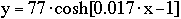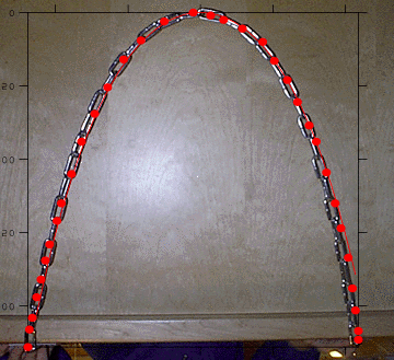 Here's a chain (upside-down picture) which hangs 20-in below a line connecting the two suspension points, also separated by 20 inches. The pix was digitized and fit to a catenary giving: