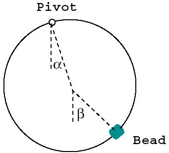 2. A hoop of mass M is free to rotate in its own plane under the influence of gravity about a point P on its edge which is held fixed as shown in the figure. A bead of mass m, located at point B, is constrained to move only on the hoop. The point C is the center of the hoop. The angles a and b are measured with respect to the vertical lines passing through P and C.