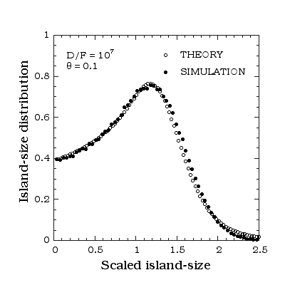 With Mihail Popescu and Fereydoon Family of Emory University, we are developing an improved self-consistent rate-equation theory which explicitly takes into account the correlation between the island size s and the area of the depletion zone surrounding an island. The goal is to accurately predict the island-size distribution as a function of deposition parameters such as the deposition rate and/or substrate temperature.
